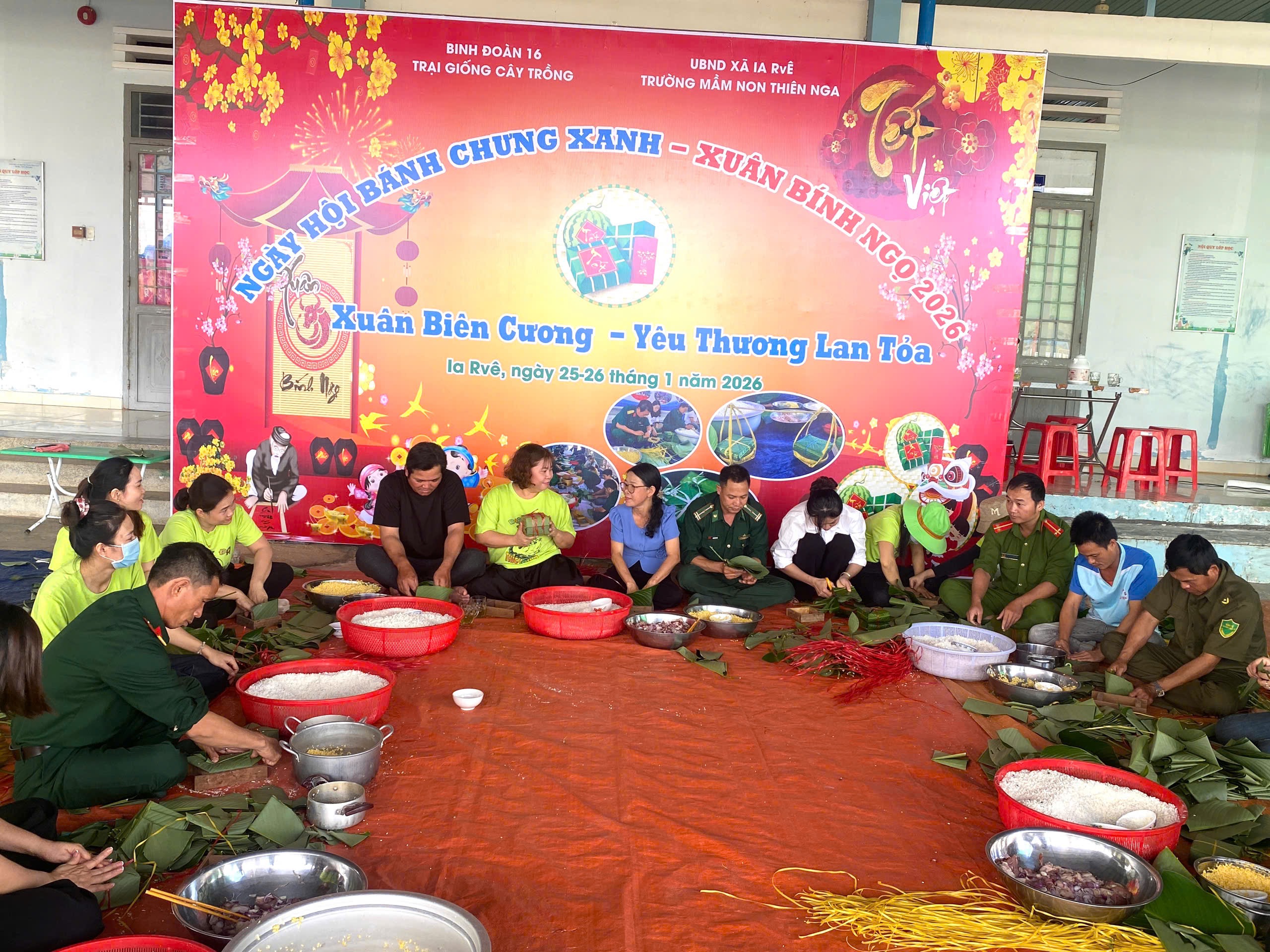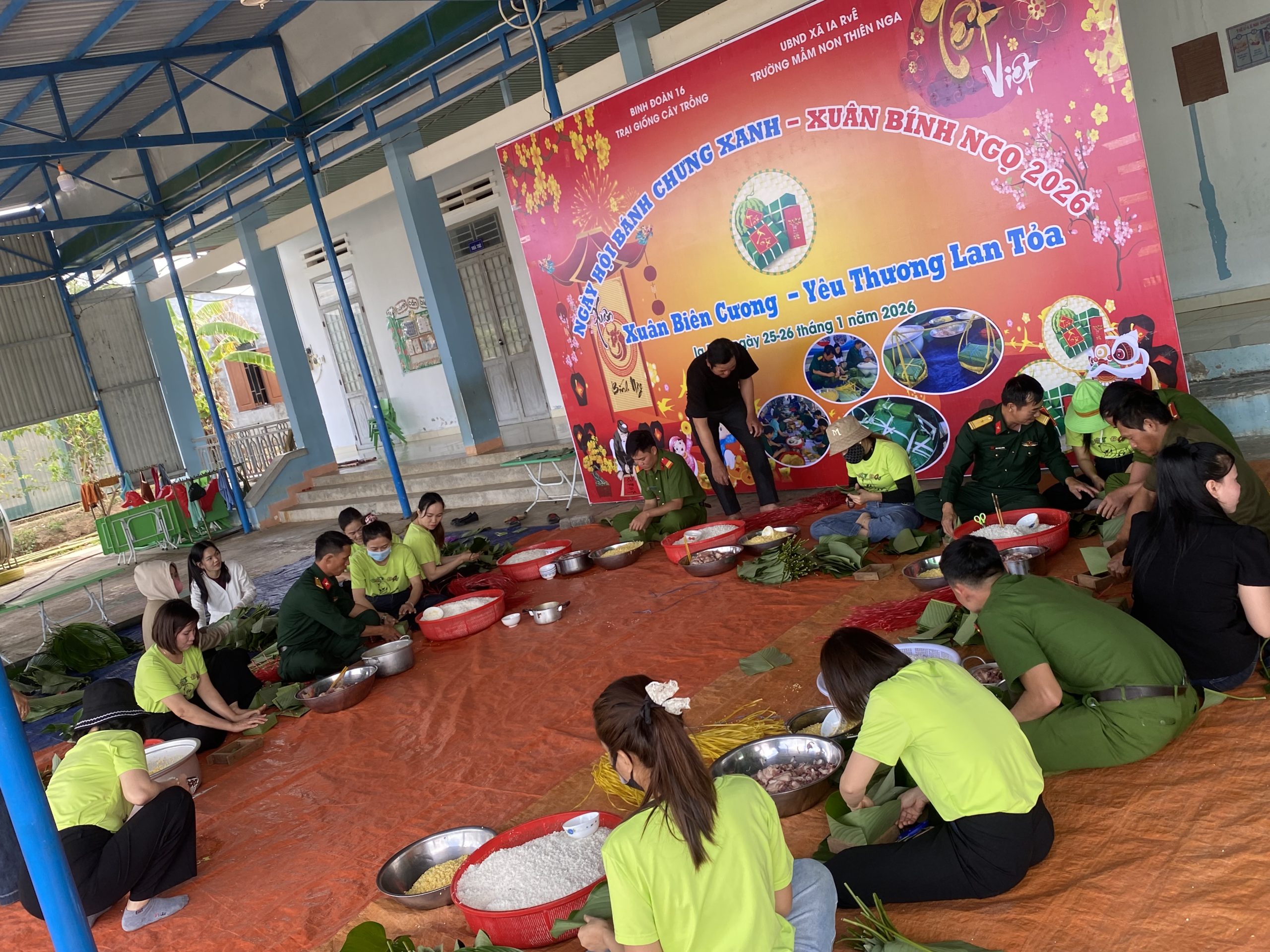 Trong không khí vui tươi, ấm áp chào đón Xuân Bính Ngọ 2026, trong hai ngày 25–26/01/2026, Ngày hội “Bánh chưng xanh – Xuân biên cương, yêu thương lan tỏa” đã được tổ chức tại Trường Mầm non Thiên Nga với nhiều hoạt động ý nghĩa, giàu tính nhân văn.